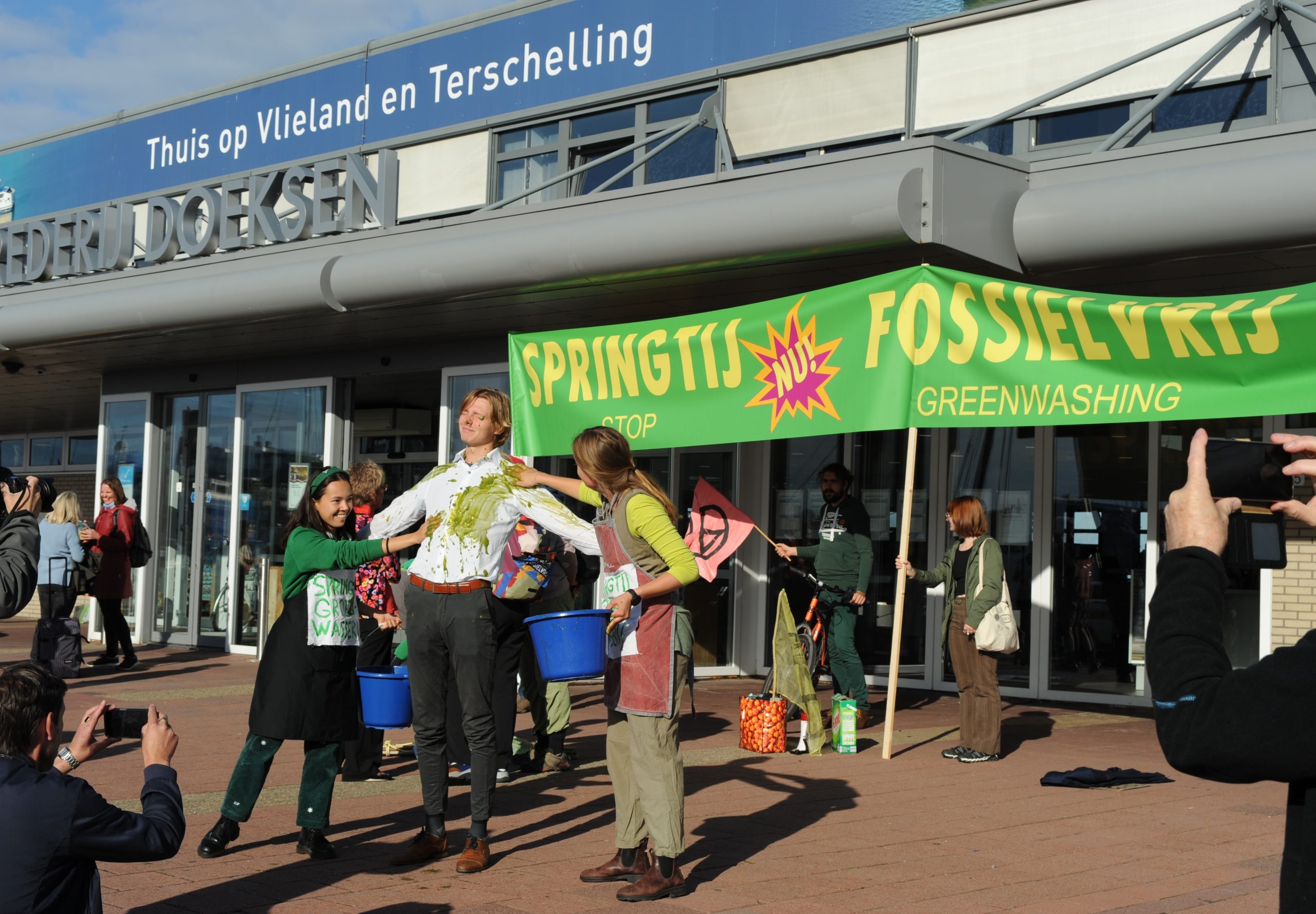 Op woensdagochtend 21 september voerden klimaatgroepen actie tegen de fossiele sponsors van het duurzaamheidsfestival Springtij. Zij eisen dat het festival breekt met fossiele sponsors zoals… Lees verder »“Maak Springtij fossielvrij” – prominenten boycotten festival, klimaatgroepen voeren actie in haven Harlingen
