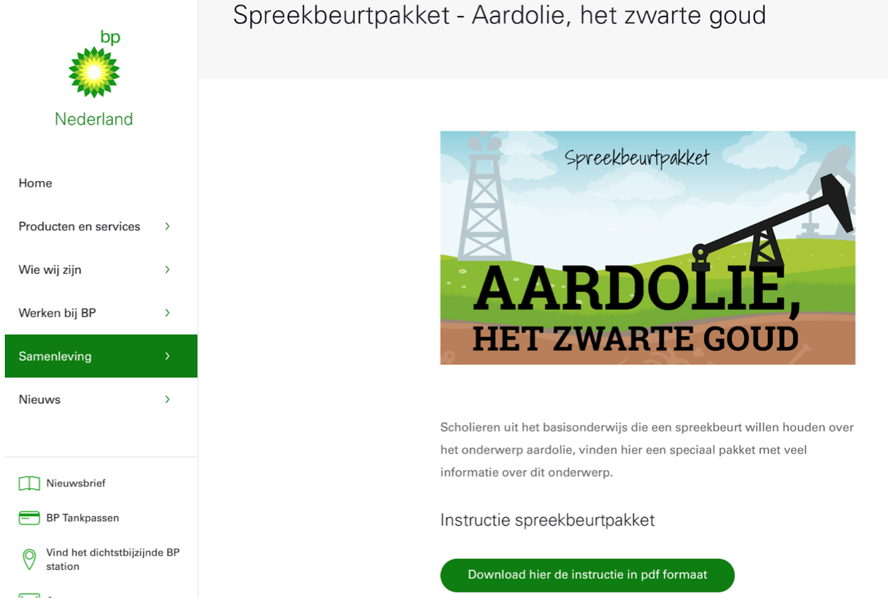 Wat: Rookgordijn door vergrootglas op groene ‘ambities’ Fossiele multinationals zoals Shell, Exxon en BP bestaan voor 99% uit olie en gas. Maar in hun reclame, marketing en PR doen ze net alsof ze de leiding nemen in de energietransitie: dat is greenwashing. Ook verleggen ze de schuld voor het klimaatprobleem naar consumenten. Met sponsoring van onderwijs, cultuur, sport en natuur, presenteren ze zich als maatschappelijk bedrijf.Ze zoeken aansluiting bij nationale waarden.